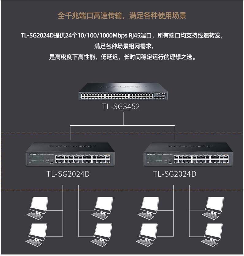 tplink24口千兆交換機16口48口百兆監(jiān)控專用網(wǎng)絡無線網(wǎng)線分流轉換交換器以太網(wǎng)企業(yè)web網(wǎng)管級VLAN匯聚SG2024D