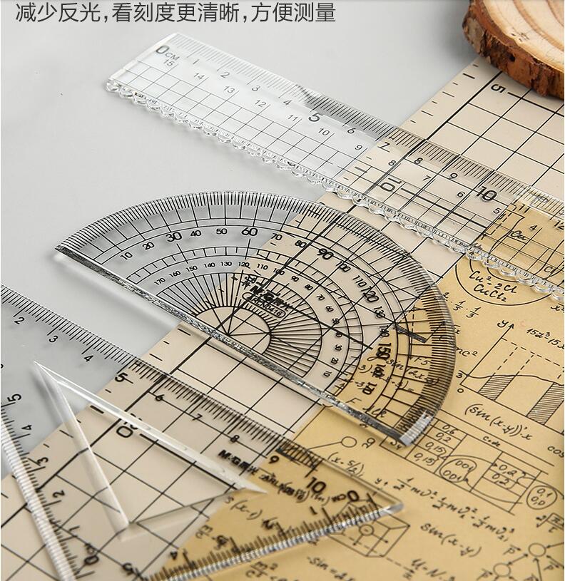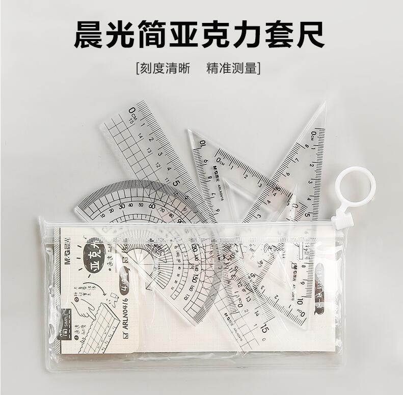 晨光文具 透明套尺 亞克力四件套15cm直尺三角板量角器學(xué)生用考試?yán)L畫專用制圖測(cè)量隨身便攜多功能幾何工具