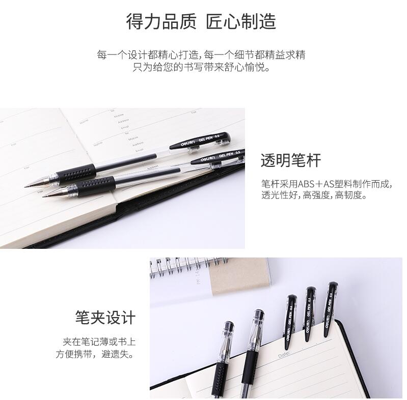 得力文具33140 中性筆學(xué)生考試量販式黑筆水筆碳素筆0.5mm 60支裝